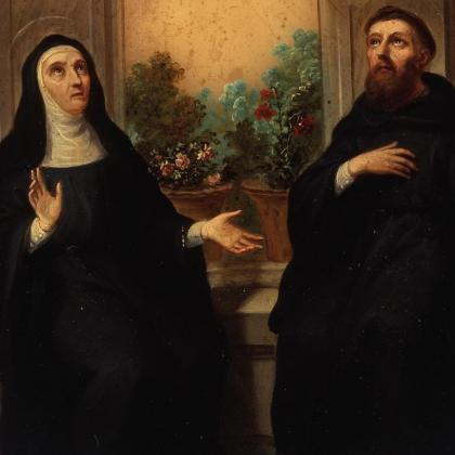 Arte virreinal Sacra conversación entre Santa Mónica y San Agustín Esta bella pintura representa una conversación entre san Agustín y su madre, santa Mónica, interrumpida por la presencia divina d ...