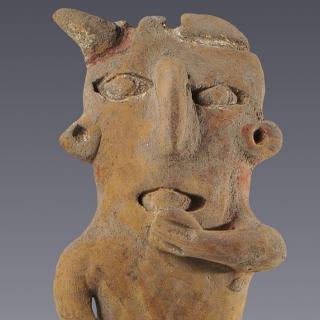 Arte Prehispánico Mujer desnuda sentada La pieza pertenece a una variante de la tradición de figurillas D, llamada tipo D4 que se caracteriza por tener los ojos y la boca rasgados. El ...